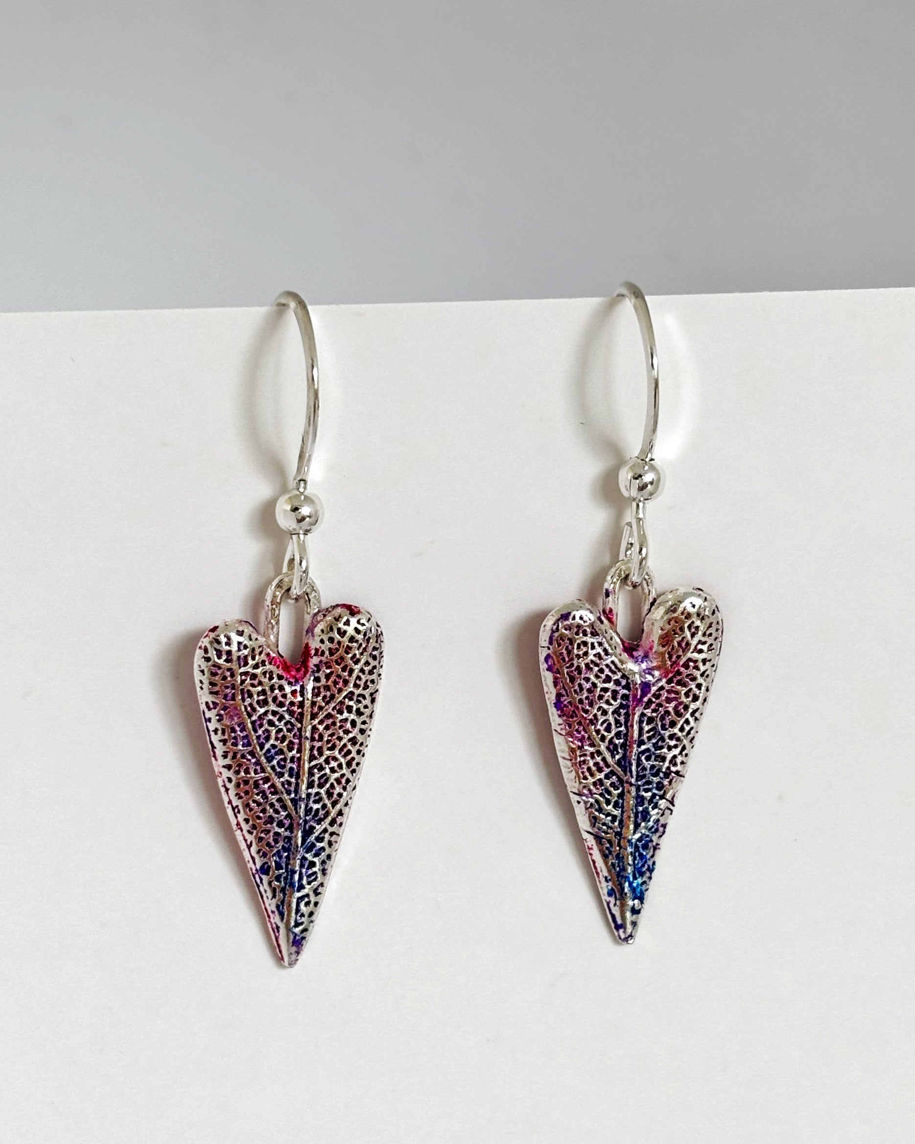 The silver is finished with alcohol inks, applied by hand to create subtle variations in colour. No two pairs are identical, making each set a one-of-a-kind piece of nature-inspired jewellery.